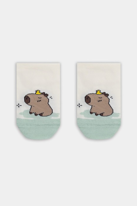 рис.3188 Детский носок суперкороткий с рисунком в виде капибара.
