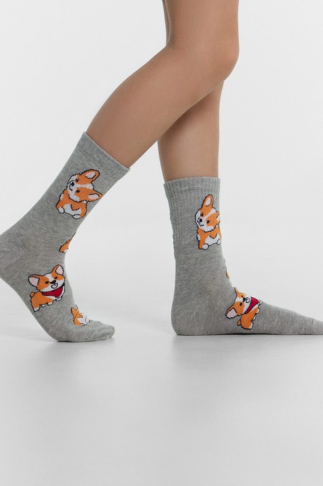 рис.2823 Детский носок с высоким плотным бортом и рисунком в виде корги.