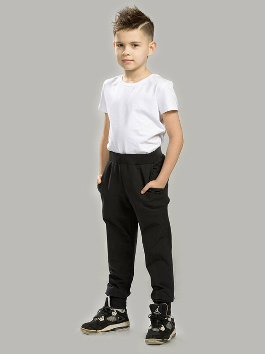 Спортивные брюки из плотного трикотажа для мальчика. Натуральный хлопок в составе позволяет телу дышать, ткань приятна на ощупь, не растягивается и почти не мнется. Пояс и манжеты из рибаны. Не давит, но хорошо садится по фигуре. Объем по талии регулируется внутренним шнуром — брюки не давят и не сползают. Можно брать на вырост. Боковые карманы для хранения самых нужных мелочей. Удобны для повседневной носки и занятий спортом.