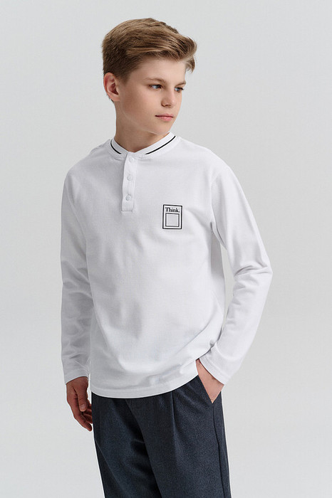 Базовая футболка хенли для мальчика с длинным рукавом. Подходит в качестве школьной одежды. Горловина отделана декоративной эластичной рибаной, которая долго сохраняет форму, устойчива к частым стиркам, не растягивается. Застёжка под горловиной на три кнопки — джемпер школьный удобно надевать и снимать. Трикотажная футболка выполнена из 100% высококачественного хлопка. Благодаря натуральному составу ткани пике изделие мягкое, воздухопроницаемое и очень комфортное. Не жарко даже самому активному ребёнку. На груди джемпер украшен лаконичным силиконовым принтом, устойчивым к многочисленным стиркам. Такие футболки на мальчика — хороший вариант одежды для школы. Модель представлена в нескольких универсальных расцветках — легко сочетать с любыми брюками, пиджаками. Рекомендуемый уход: стирать при температуре не выше 30 °С, без предварительного замачивания, с изнанки, расправить перед сушкой. Выбирайте нужный размер по таблице размеров на фото. Цвет товара на экране вашего устройства может отличаться от цвета изделия вживую.