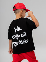 Футболка для мальчика прямого кроя - это идеальный выбор для активного ребенка. Вырез горловины обработан эластичной тканью — она прекрасно держит форму, не растягивается, при этом ребёнку удобно надевать и снимать футболку. Футболка с принтом и надписями. Перевод надписи: делай то, что делает тебя счастливым. Спортивная футболка подходит как для подростков так и для малышей в детский сад. Подходит для любого времени года.