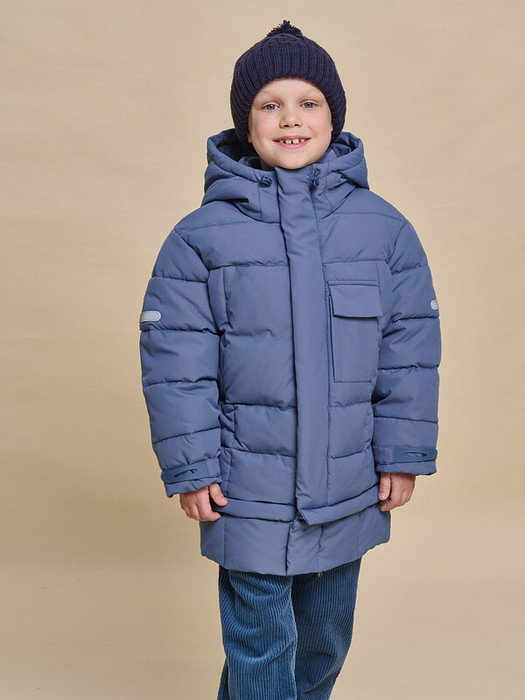Куртка зимняя для мальчика с горизонтальной стёжкой. На внешнюю поверхность материала нанесена водоотталкивающая пропитка (DWR), она задерживает грязь и влагу снаружи — ребёнок не промокнет, есть дополнительная пропитка на внутренней стороне ткани. Куртка прямого оверсайз-силуэта. Капюшон не отстегивается. Внутренние манжеты рукавов из рибаны — защита от ветра и холода. Куртка-трансформер с отстегивающейся нижней частью. Модель имеет две длины: короткая (до подъягодичной складки) и средняя (до середины бедра). Капюшон с двумя швами, что обеспечивает анатомически правильную форму и комфортную посадку по голове. Легко одевается на шапку.  Капюшон застёгивается на липучку (велькро), объём реглируется эластичным шнуром со стопперами. Высокий воротник-стойка, утепленный синтепоном и флисом на внутренней стороне, защищает шею от холода и ветра. Горло закрыто, шарф не нужен. Центральная застёжка на пластиковую тракторную молнию, разъёмную с двух сторон — удобно садиться, пуллеры металлические, прочные. Сверху планка на велькро (липучках) — быстро застёгивается и расстёгивается. Куртка теплая — центральная молния с изнаночной стороны дополнительно закрыта ветрозащитной планкой. В рукавах внутренние манжеты из эластичной рибаны для защиты от холода и ветра. Рибана приятна на ощупь и при этом надолго сохраняет эластичность, не теряет форму. По низу рукавов снаружи силиконовая пата на липучке (велкро) - можно регулировать ширину рукава.  В каждой куртке есть нейм-лейбл! Ребенок не потеряется и не потеряет куртку! Пуховик на мальчика с прорезными карманами на уровне груди с магнитными застёжками. Карманы утеплены флисом. Накладной карман на липучке.  На спинке расположены светоотражающие элементы — безопасность в тёмное время суток. Ухаживать за курткой необходимо согласно указанным на вшивных ярлыках рекомендациям. Модель без принта. Зимняя куртка выполнена из полиэстера — она тёплая, лёгкая, без проблем стирается, быстро сохнет, сохраняет отличную форму и цвет надолго. Мягкая флисовая подкладка добавляет дополнительную теплоту изделию во время холодов. В рукавах подкладка из гладкого полиэстера для лёгкости надевания. Отличная куртка для мальчика дошкольного и младшего школьного возраста, а также подростка. Идеальный, тёплый и стильный зимний пуховик. Рекомендуемый температурный режим: не ниже минус 30 градусов. Утеплитель: экопух. Куртка водоотталкивающая утеплённая подходит для носки в детский сад, школу, для прогулок и активного зимнего отдыха, игр на воздухе.