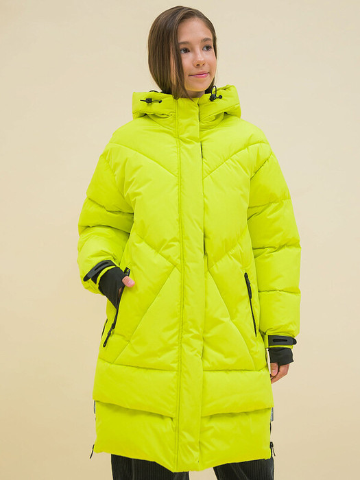 Пальто зимнее для девочки. На внешнюю поверхность материала нанесена водоотталкивающая пропитка (DWR), она задерживает грязь и влагу снаружи — ребёнок не промокнет. Также есть дополнительная пропитка на внутренней стороне ткани. Пальто актуального оверсайз-силуэта подходит для всех типов фигуры. Капюшон двухшовный, что обеспечивает анатомически правильную форму и комфортную посадку по голове. Капюшон не отстегивается, есть регулировка объема эластичными шнурами с пластиковыми стопперами. Манжеты рукавов дополнительно застегиваются силиконовой патой на липучке (велкро). Внутри рукава ветрозащитная манжета из эластичного трикотажного полотна с прорезью для большого пальца, которая позволяет придерживать рукав при надевании перчаток. Центральная застёжка на тракторную молнию с двумя пуллерами — удобно садиться. Тканевый стоппер защищает подбородок от зажима молнией. Фиксирующая строчка предохраняет планку от «заедания» в процессе застёгивания. Куртка-пальто тёплая — дополнительно, для защиты от ветра и холода, центральная молния закрыта ветрозащитной планкой на липучках (велкро). Высокотехнологичные липучки нового образца не цепляются к одежде и не нуждаются в постоянной чистке от ворсинок. В боковых швах вставлены застёжки-молнии для возможности увеличения ширины по низу изделия. Ультрамодная геометричная стёжка спереди. По низу имитация двойного изделия для придания трендового дополнительного объема. Пальто стёганое дополнено прорезными карманами на молнии — удобно пользоваться. Карманы с боковым входом закрываются на водонепроницаемую молнию со скрытыми звеньями — их содержимое не промокнет. Внутри карманы утеплены мягким флисом. В каждой куртке нейм-лейбл! Ребёнок не потеряется и не потеряет куртку! На спинке и в боковых швах расположены светоотражающие элементы — безопасность в тёмное время суток. За изделием просто ухаживать. Пальто однотонное, без принта. Куртка выполнена из полиэстера — она тёплая, не промокает, легко стирается, быстро сохнет, сохраняет отличную форму и цвет надолго. Подкладка из мягкого, тёплого и дышащего флиса (по стану, внутреннему воротнику и в капюшоне). В рукавах подкладка из тонкого полиэстера — благодаря этому ребенку легко надевать куртку, руки не путаются в рукавах. Пуховик выполнен в модном жёлтом цвете. Он легко комбинируется с различными брюками, юбками, колготками. Размерная линейка: 3 (98); 4 (104); 5 (110); 6 (116); 7 (122); 8 (128); 9 (134); 10 (140); 11 (146). Пальто оверсайз подходит для маленьких девочек дошкольного и младшего школьного возраста, а также девочек-подростков. Рекомендуемый температурный режим: не ниже минус 30 градусов. Утеплитель: экопух. В рукавах дополнительный слой тонкого синтепона. Модель идеальна для носки в детский сад, школу, для прогулок и отдыха. Зимнее пальто для девочки — прекрасный подарок для дочери или внучки на Новый год или любой другой праздник.