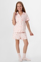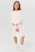 Комплект состоит из рубашки и брюк. Рубашка прямого силуэта, с отложным воротником, спинка цельнокроеная. Плечо слегка спущено. Рукав втачной, одношовный, длинный. Центральная застежка на пуговицы d= 10 mm. Брюки слегка расширены к низу. Пояс цельнокроеный с эластичной тесьмой внутри Rv35. Низ застрочен швом в подгибку.
