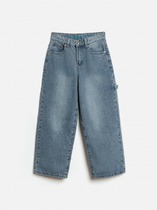 Джинсы, утепленные флисом. Посадка comfort fit – свободный крой брючин. Эластичный пояс со шнурком.