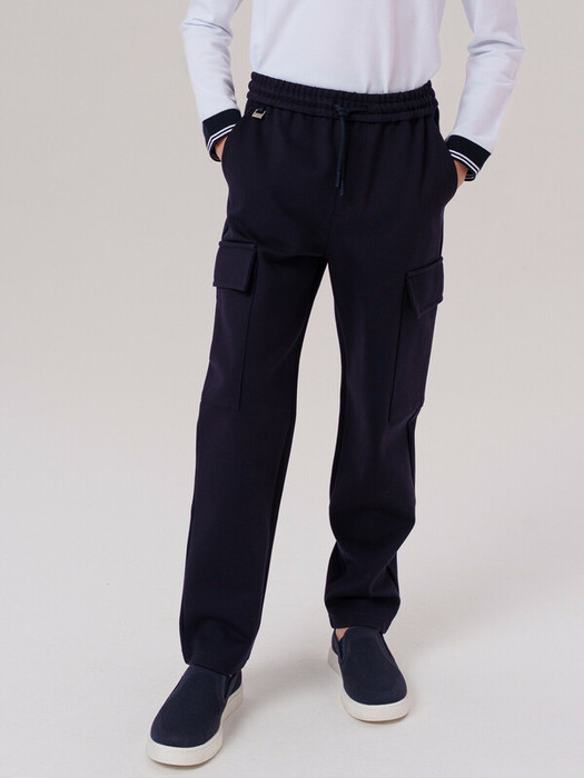 Классические темно-синие школьные трикотажные брюки для мальчика.