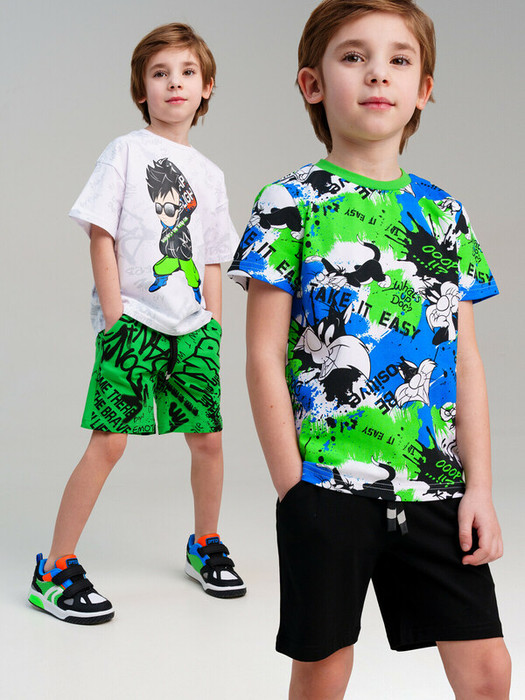 Набор детских шорт для мальчика. Комплект шорт из качественного и приятного на ощупь трикотажа джерси. Шорты на резинке со шнурком. Боковые карманы. Высокое содержание хлопка. Благодаря наличию эластана в составе ткани изделие держит форму и меньше мнется. Модель выполнена из качественного и приятного на ощупь трикотажа.