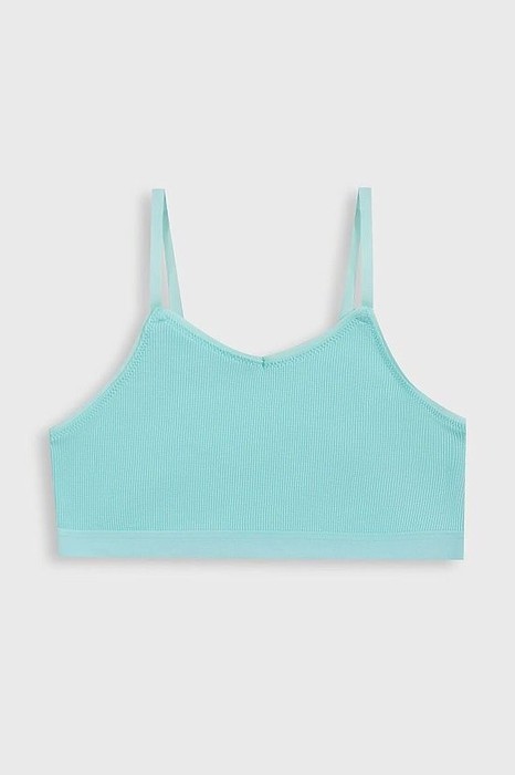 Хлопковое бюстье прилегающего силуэта для девочек. Выполнено из легкой и приятной к телу трикотажной рибаны. Вырез горловины и проймы окантованы эластичной тесьмой. На бретелях есть кольца-регуляторы. По нижнему краю бюстье расположена удобная и стильная жаккардовая тесьма. Идеально!