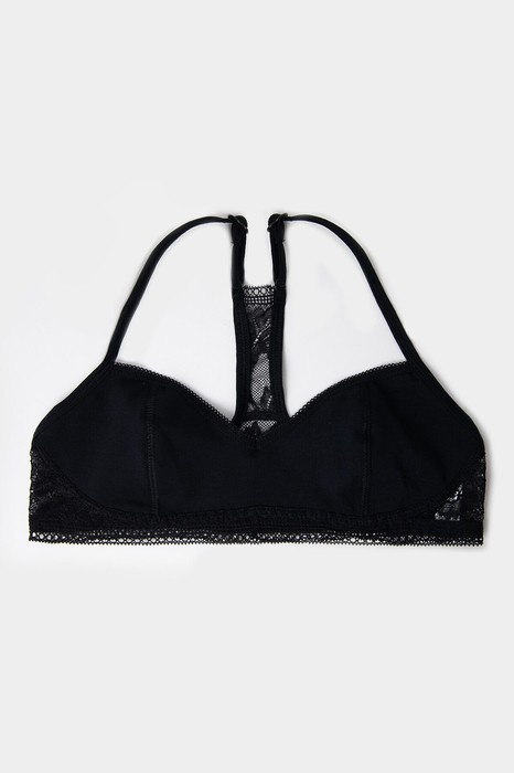 Элегантное бюстье для девочек, изготовленное из эластичного трикотажного полотна и кружева. Чашки на подкладке, стан кружевной. Бретели регулируются сзади и крепятся к детали спинки при помощи колец. Очень комфортная и романтичная модель!