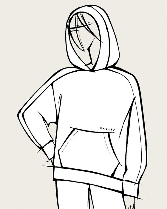 Худи свободного кроя с капюшоном, спущенное плечо, карман кенгуру.
