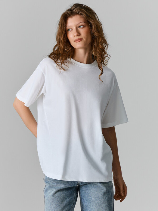 Эта женская футболка из трикотажной кулирки — стильный и удобный выбор для повседневного гардероба. Модель отличается свободным силуэтом и круглым вырезом, обеспечивая комфорт и свободу движений благодаря спущенной линии плеча и углубленной пройме. Широкие рукава, чуть выше локтя, добавляют оригинальности и делают футболку еще более удобной. Эта стильная модель прекрасно сочетается с различными элементами гардероба, добавляя непринужденный и модный акцент в ваш образ.