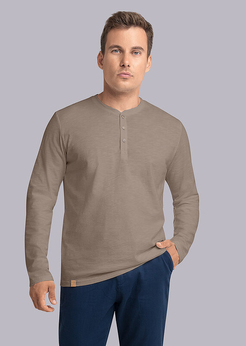 Лонгслив мужской с длинным рукавом, округлой горловиной с планкой. Данная модель прекрасно подойдёт для любого низа благодаря своей универсальности. Отличное решение для тёплого времени года.