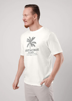Футболка с круглой горловиной из хлопкового фактурного полотна флам в абстрактную набивку. Изделие дополнено имиджевым принтом. Отлично подойдет для прогулок и встреч с друзьями.