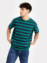 Мужская футболка увеличенного объема из дышащего хлопкового полотна с круглой горловиной и коротким рукавом. Яркость данной модели добавляет набивка в полоску и имиджевая фурнитура. Отличное дополнение к джинсам.