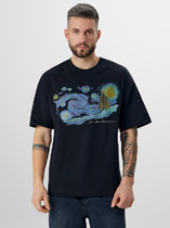 Футболка мужская, увеличенного объема, из хлопкового полотна, круглым вырезом горловины и коротким втачным рукавом. Оригинальность изделию придает дизайнерский принт, а также горизонтальный рез по спинке. Отличный вариант на каждый день.