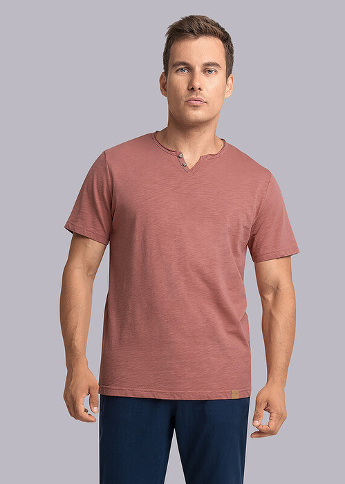 Футболка мужская с округлой горловиной и планкой, коротким втачным рукавом. Данная модель прекрасно комбинируется с джинсами или шортами. Отличное решение на лето, для прогулок с друзьями или поездки на отдых.