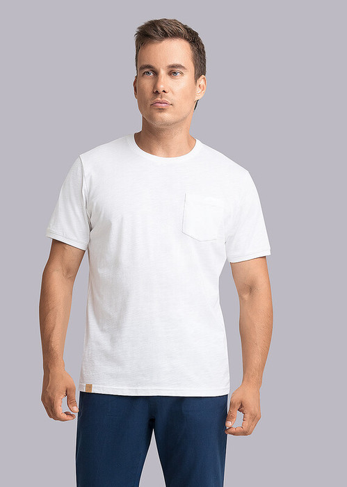 Футболка мужская с округлой горловиной, коротким втачным рукавом и карманом. Данная модель прекрасно комбинируется с джинсами или шортами. Отличное решение на тёплое время года. Прекрасно подойдёт для прогулок с друзьями или поездки на отдых.