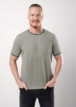 Футболка мужская из трикотажного полотна, с круглым вырезом горловины и коротким рукавом. Материал эластичен, не сковывает движений, благодаря хлопку в составе обладает дышащими свойствами.