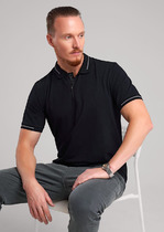 Футболка мужская с круглым вырезом горловины, планкой с пуговицами и с коротким втачным рукавом на манжете. Выполнена из трикотажного полотна. Изделие дополнено имиджевой фурнитурой, благодаря этому образ выглядит стильным и завершенным.