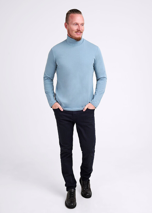 Базовый мужской лонгслив с длинным рукавом на воротнике стойке с загибом. Выполнен из дышащего хлопкового полотна. Лонгслив можно скомбинировать с брюками или джинсами. Отличное решение для похода на работу или встречи с друзьями.