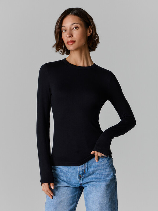 Модельные особенности:  Джемпер женский прилегающего силуэта. Горловина круглой формы, окантована бейкой из осн. полотна. Рукав втачной, длинный, узкий. Нижние срезы обработаны швом вподгибку.