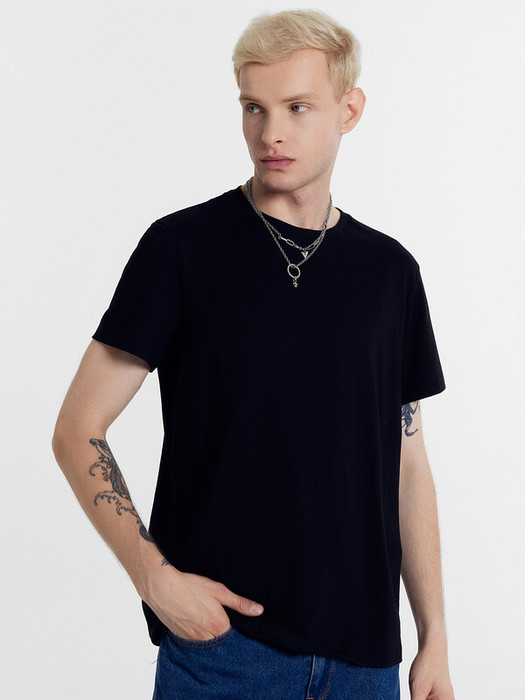 Мужская однотонная футболка из трикотажной кулирки. Силуэт прямой, расслабленный. Длина до середины бедер. Вырез классический, круглый. Рукава короткие. Актуальная футболка для стильный мужчин – универсально!