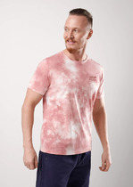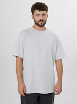 Футболка прямого силуэта. Горловина округлой формы обработана обтачкой из рибаны. Шов втачивания обтачки по спинке закрыт бейкой из основного полотна. Рукава втачные, корткие. Линия плеча слегка спущена.Нижние срезы футболки и рукавов обработаны швом вподгибку.