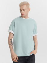 Футболка свободная укороченная, оверсайз. Горловина округлой формы обработана обтачкой из рибаны. Рукава втачные, корткие. Линия плеча спущена. На детали переда накладной карман (мод 111899-1). Нижние срезы футболки и рукавов обработаны швом вподгибку.