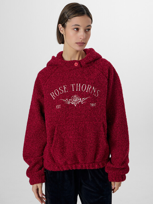 Женское худи бежевого цвета согреет в прохладную погоду. Модель выполнена из уютного материала шерпа, который часто называют «барашек».
