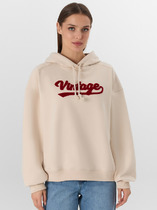 Анорак изготовлен из трикотажного полотна футер. Анорак свободного силуэта (оверсайз), с капюшоном. Горловина округлой формы. Капюшон со средним швом, на подкладке из осн. полотна. Плечо спущено, рукав втачной длинный. По низу рукава отрезная манжета из рибаны.
