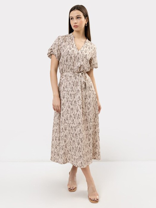 Очаровательное женское платье из нежной и легкой вискозы. Платье расширяется к низу, талия подчеркнута широким поясом. Рукава-фонарики длиной до локтя. Длина модели ниже колена. Рекомендуем для стильных летних образов!