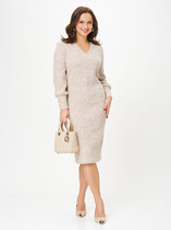 Платье женское прилегающего силуэта, длина мини. Перед и спинка цельнокроеные. Горловина обработана обтачкой из основного полотна. По центру вставка из сетки. Рукава длинные, с плечевой накладкой внутри (В-16/6). Низ изделия и рукавов обработаны швом вподгибу.