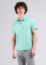 Джемпер мужской «поло» прилегающего силуэта из трикотажного полотна пике. Горловина круглой формы со стояче-отложным воротником из довяза. Центральная застежка планка на пуговицы. Шов горловины спинки обработан хб тесьмой. Рукав втачной, короткий. В боковых швах обработаны разрезы.