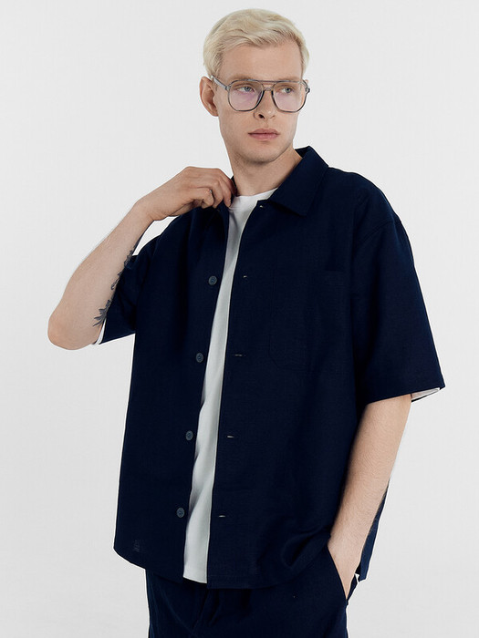 Рубашка прямого силуэта, свободная. Рукава втачные короткие. Воротник отложной с цельнокроеной стойкой. Центральная застежка на петли и пуговицы. Борта с цельнокроеными подбортами. На левой детали переда настрочен накладной карман. Спинка с отрезной кокеткой. По низу боковых швов обработаны разрезы. Нижний срез сорочки и рукавов обработан швом вподгибку с закрытым срезом.