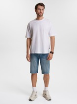 Шорты прямые, свободные. Пояс цельнокроеный с эластичной тесьмой внутри. С внешней стороны пояса пробиты петли и втянута хб тесьма.В боковых швах обработаны карманы, подкладка кармана из основного полотна. Нижние срезы брюк выполнены швом вподгибку на 2-игольной плоскошовной машине.