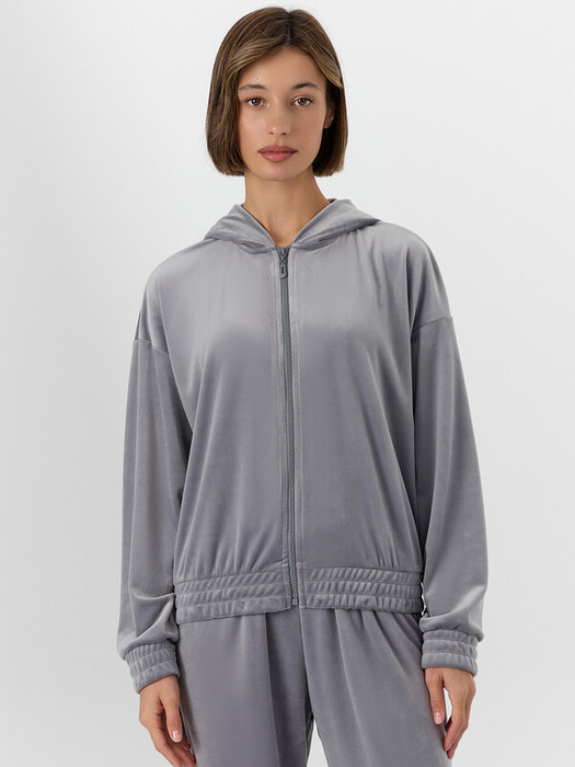 Манжеты на рукавах и пояс по низу, дополненные декоративными строчками, обеспечивают аккуратную посадку. Внутренние швы горловины обработаны мягкой хлопковой тесьмой для приятных тактильных ощущений. Велюровый материал с добавлением эластана мягко тянется и дарит нежность при каждом движении. Эта толстовка станет любимым предметом гардероба для спокойных вечеров и утреннего отдыха.