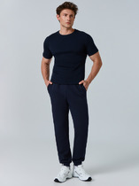 Мужские брюки, джоггеры с манжетами. Пояс из двух деталей, внутри резинка, передняя часть из основной ткани, задняя из кашкорсе. По поясу отстрочка, петли,шнур. Боковые карманы, боковые швы отстрочены. Накладной карман на правой задней половинке брюк.