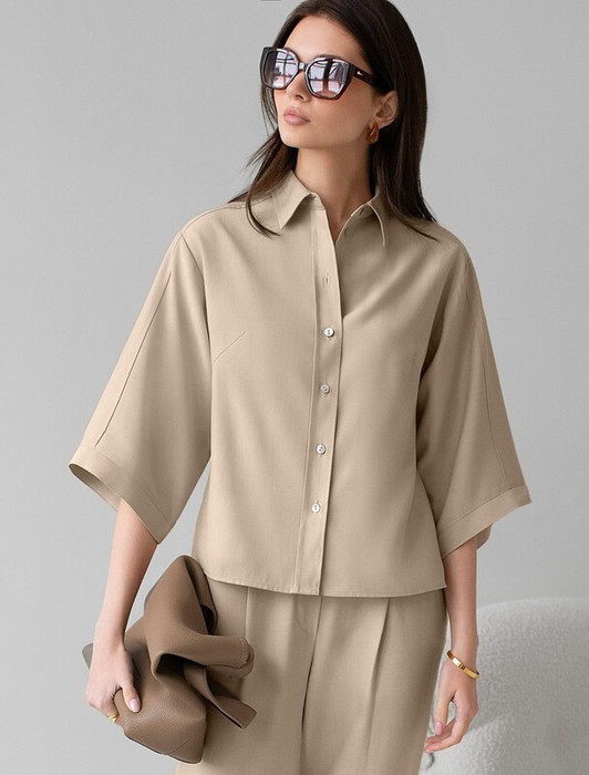 Совместные закупки Екатеринбург Женская одежда Блузки, рубашки — 22.03 Vilatte Блузка с широкими рукавами 3/4 из плотного лиоцелла D29.354 светл