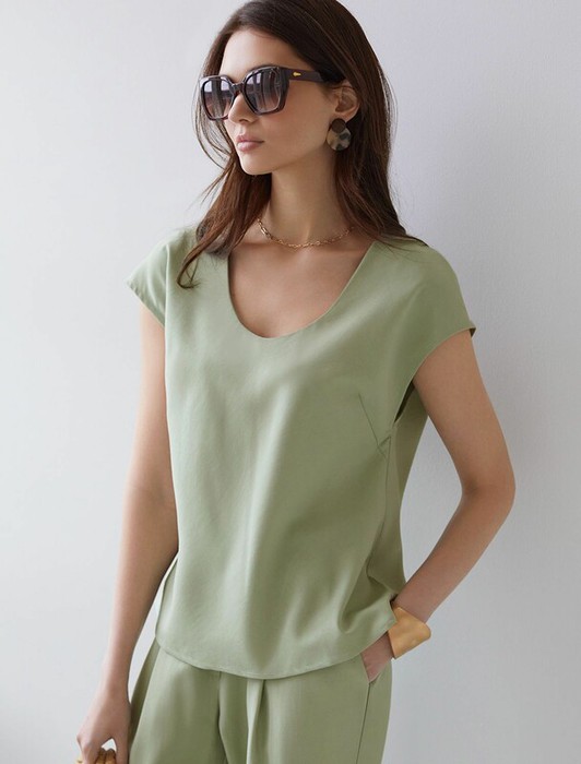 22.03 Vilatte Блузка с U вырезом скроенная по косой из плотного лиоцелла D29.36
