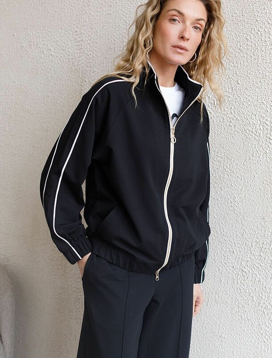22.03 Vilatte Свободный бомбер с лампасами на молнии из петельчатого футера дву