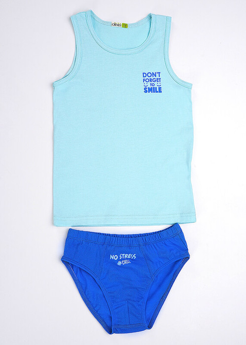 Комплект: классическая майка на 100% хлопке с окантовкой по горловине и проймам, спереди украшена принтом. Трусы для мальчика классической формы из хлопка . По талии и ножке резинка. Декоративные резы спереди .Украшены принтом.