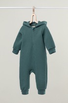 Комбинезон с капюшоном для мальчика. Изготовлен из высококачественного петельчатого футера трёхнитки. В составе 80% натурального хлопка и 20% полиэстера, при этом полиэстер ввязан внутрь по особой технологии и не соприкасается с кожей. Застёгивается на молнию. В капюшоне мягкий подклад из гладкого материала супрем. Манжеты и пояс выполнены из эластичного полотна. Изделие сохраняет цвет и форму после многократных стирок. Все трикотажные полотна производятся в соответствии с нормами швейцарского сертификата ЭкоТекс.