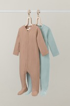 Комбинезоны для новорождённых из мягкого эластичного трикотажа интерлок, произведённого из натурального хлопка. В упаковке 2 штуки. Застёгиваются сбоку на молнию и на кнопку. Длинные рукава-реглан оканчиваются манжетами. Оригинальная набивка выполнена из стойких гипоаллергенных текстильных красителей. Все трикотажные полотна производятся в соответствии с нормами Швейцарского сертификата ЭкоТекс.