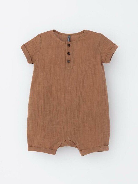 Легкий песочник для мальчика из мягкого хлопокового муслина с застежкой на пуговицы. Изделие сохраняет цвет, форму и фактуру жатости после многократных стирок.