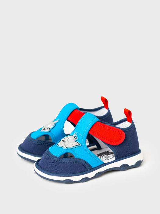 Сандалии детские для мальчика. При ходьбе сандалии издают писк - для ребенка это интересный игровой элемент, а мамы будут всегда слышать своего ребенка на детской площадке. При желании пищалку можно вынуть. Сандалии с закрытой пяткой и удобным ремнем с липучкой, который позволяет ребенку обуваться самостоятельно. Модель выполнена из экологичного и гипоаллергенного хлопкового материала, который идеально подходит для маленьких детей. Разные патчи с любимыми героями Том и Джерри на правой и левой полупаре позволяют ребенку в игровой форме научиться определять правую и левую ножку. Двухсоставная подошва из ТПР очень гибкая, легкая и нескользкая. Особая технология сборки обуви добавляет ей дополнительный комфорт.