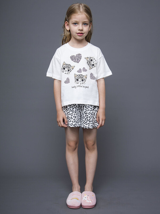 Пижамный комплект для девочки: футболка с коротким рукавом и шорты. Изготовлен из мягкого хлопка, обеспечивающего комфорт и свободу движений.Характеристики:Ткань: Супрем пенье 100% хлопокПроизводитель: batik