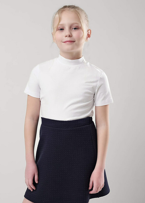 Базовый джемпер со стойкой и коротким рукавом станет отличным дополнением к вашему гардеробу! Модель выполнена из хлопкового полотна с добавлением эластана. Джемпер отлично подойдет для создания классных повседневных и школьных образов