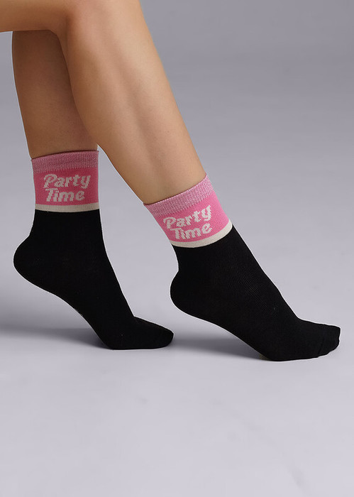 стильные носки для девочки с надписью ""время вечеринки"" , резинка украшена люрексной нитью