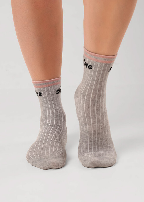 Носки для девочки с контрастными полосами на паголенке и надписью.