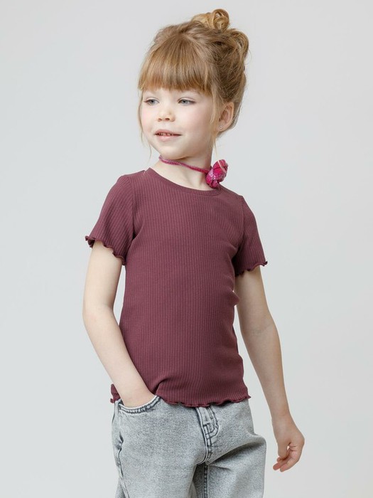 Футболка для девочки из эластичного трикотажа в рубчик. Изделие сохраняет цвет и форму после многократных стирок. Все трикотажные полотна производятся в соответствии с нормами швейцарского сертификата ЭкоТекс.